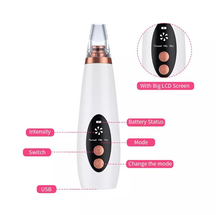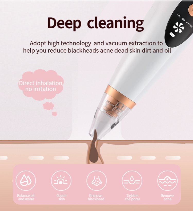 Vacuum function cleans dirty pores through suction and increases blood circulation in the skin.